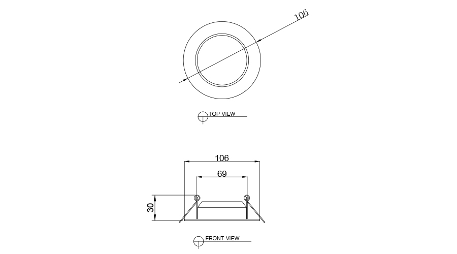 매입등 드럼 (매입등) 내용 품 명 소비전력(W) 색온도(K) 총광속(lm) 광효율(lm/W) 연색성(Ra) 크기(mm) 재질 body cover 매입등 5W 3,000K 300이상 60이상 70이상 W106*H30 Steel Acrylic 5W 5,700K 350이상 70이상 70이상 W106*H30 Steel Acrylic 도면